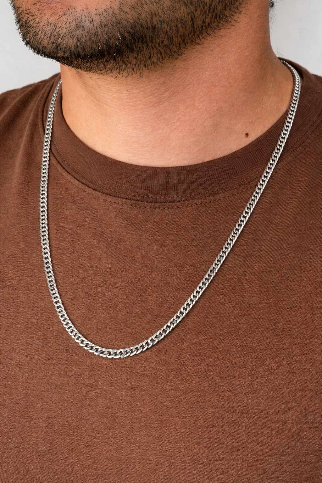 - COLAR MASCULINO PRATEADO AÇO ELO DUPLO PEQUENO (60cm)